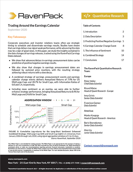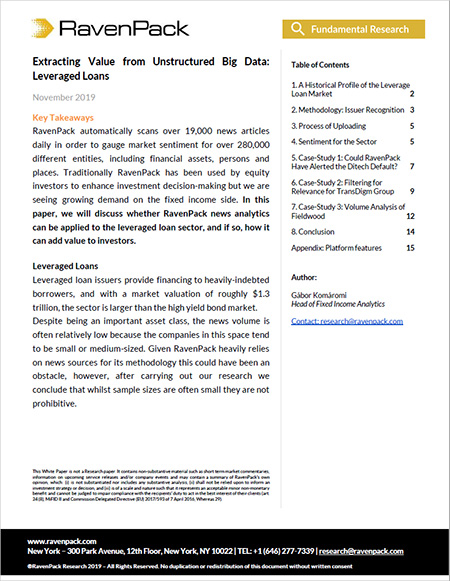 RavenPack is the leading big data analytics provider for financial services. The company’s data solutions, research and technology allow clients to enhance returns, reduce risk, and increase efficiency by systematically incorporating the effects of public information in their models and workflows. RavenPack’s clients include the most successful hedge funds, banks, and asset managers in the world.