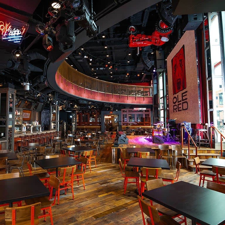 Ole Red is a two-story bar and restaurant, complete with a performance space and dance floor. Owned by country music legend Blake Shelton, the space also includes a roof area featuring an indoor-outdoor bar and restaurant with incredible views of Lower Broadway and Music City. Attendees will have the chance to enjoy great food and drink, live music and the opportunity to personalize and bring home your own cowboy hat.