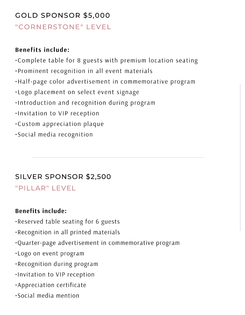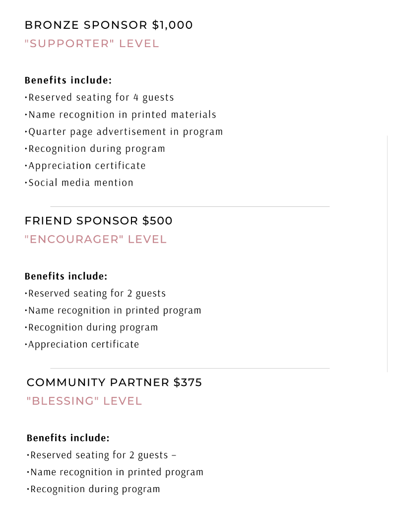 Sponsorship Levels & Benefits