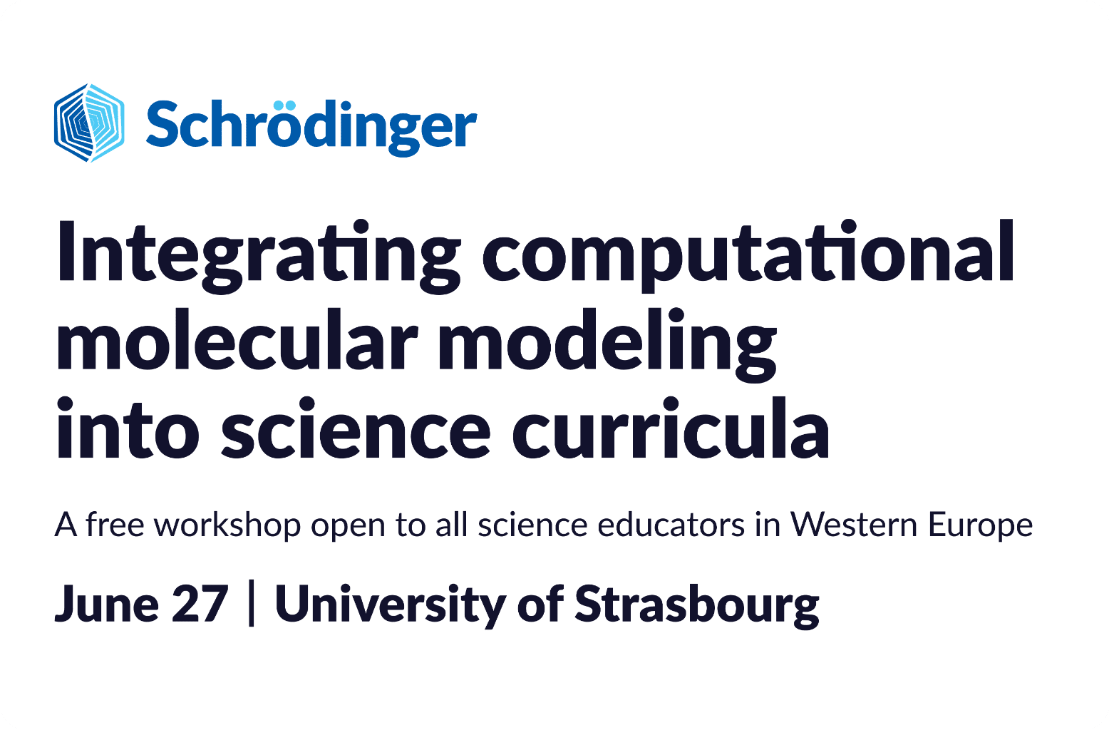 This in-person event will bring together chemistry and biology educators from Western Europe. The event will be hosted at the University of Strasbourg. This workshop will highlight how educators can collaborate to create interdisciplinary lessons using computational molecular modeling.